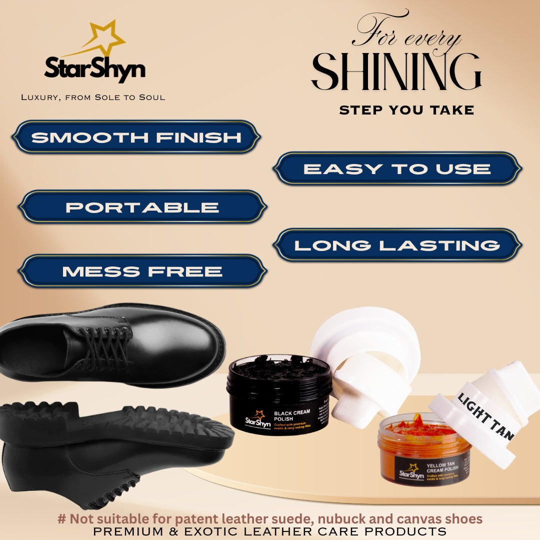 We offer a variety of shoe polishes including wax-based, cream-based, and liquid polishes. Each type is designed to provide a different finish and level of protection, catering to various leather types and customer preferences.