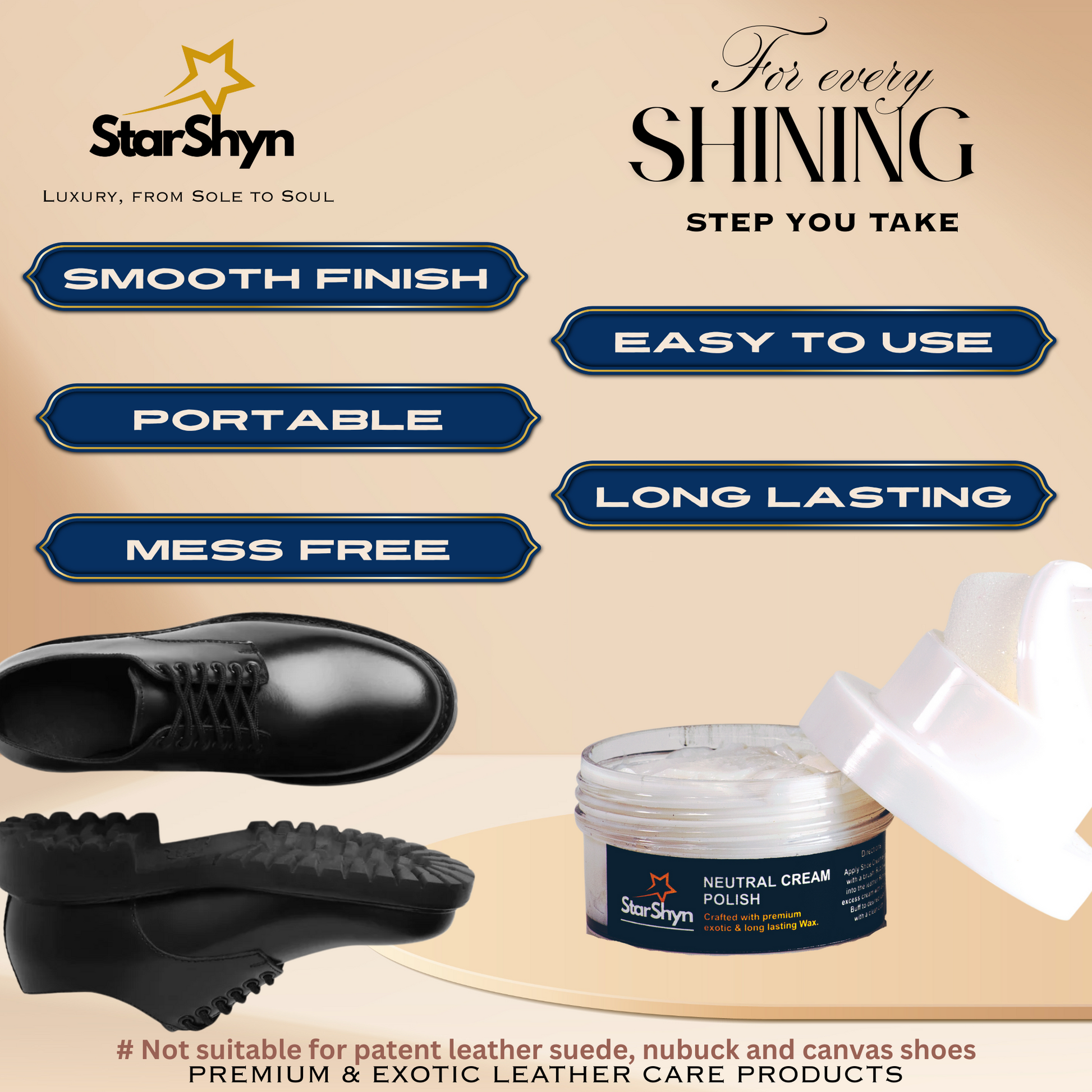 StarShyn Shoe Cream Polish - 50 ML | Enriched with Carnauba & Bees Wax |Natural Waxes Formula for Leather Shoes | Leather Shoe Cream Polish | Long-Lasting Shine